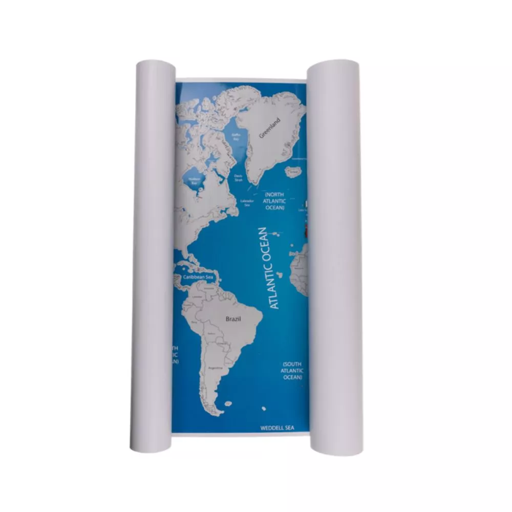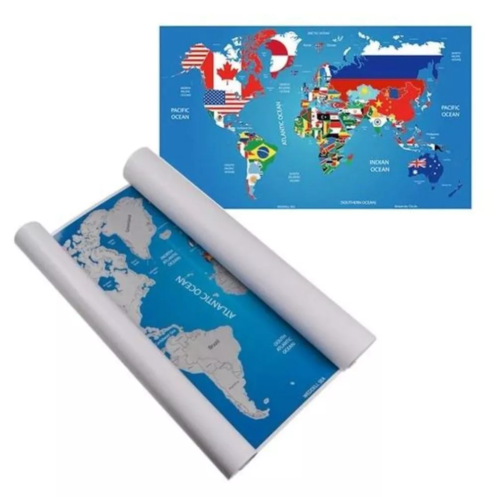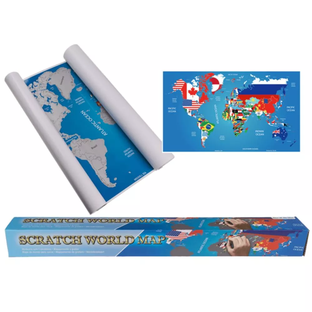 Descopera Pamantul in timpul liber folosindu-te de o moneda si harta lumii razuibila, cu steaguri. Cu fiecare milimetru de harta pe care-l razi, vei descoperi un nou continent pe care sa-l tii minte in detaliu, iar la final il poti inrama si sa-ti transformi cel putin o camera intr-una cocheta.