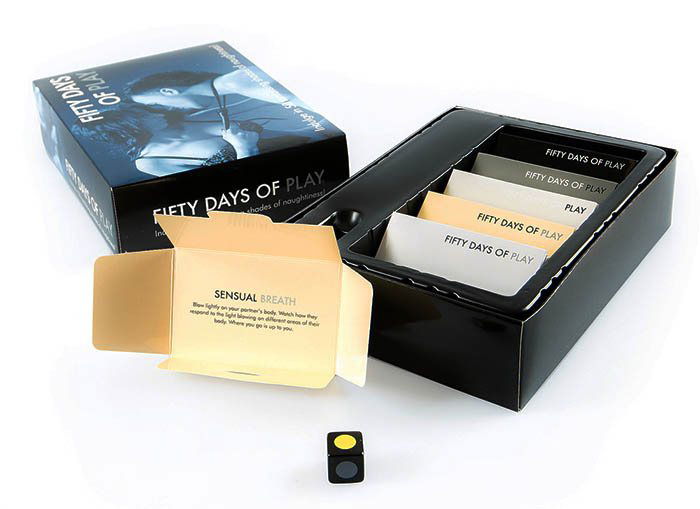 Pentru a creste misterul si  a intensifica dorinta, alegerea este lasata la mana sortii, astfel ca zarul personalizat inclus in pachet va va fi de mare ajutor. Odata zarul aruncat, vei sti din care pachet sa extragi tema pentru seara romantica in doi. Jocul erotic Fifty Days of Play este un cadou pentru iubit asa cum nu i-ai mai facut niciodata sau, de ce nu, un cadou pentru iubita, daca esti un tip indraznet si ea ti-a dat de inteles pana acum ca i-ar placea sa incercati lucruri noi si obraznice in intimitate.