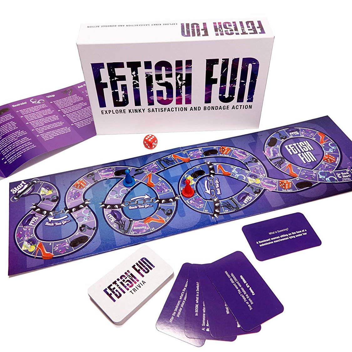 • Exploreaza-ti cele mai ascunse fantezii cu Joc pentru cupluri Fetish Fun - un cadou nonconformist de sexi pentru iubita sau iubit • Setul contine cardurile cu provocari pentru a va descoperi unul altuia toate fetishurile, tabla de joc, 2 pioni si un zar (pentru ca aici lucrurile sunt egale si trebuie sa dominati fiecare pe rand, insa unul va fi mereu mai «norocos» ) Jocul este in limba engleza.