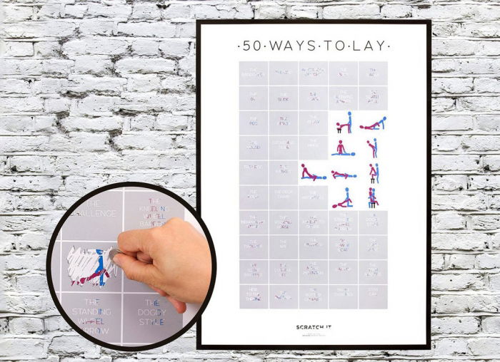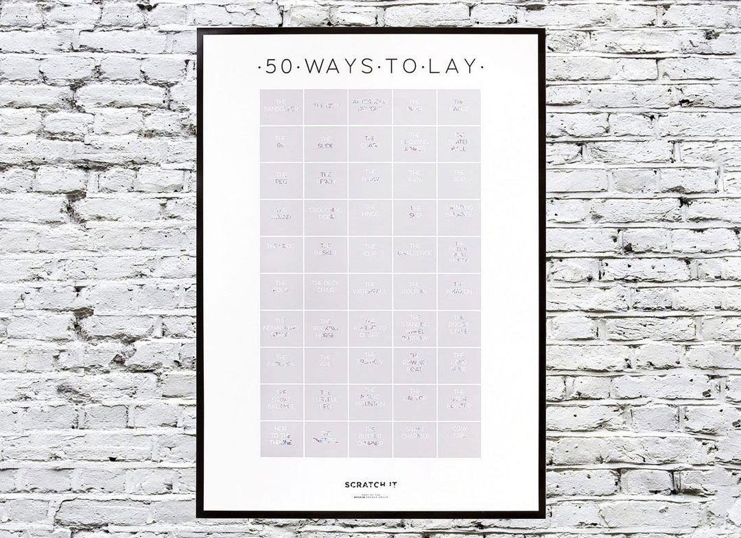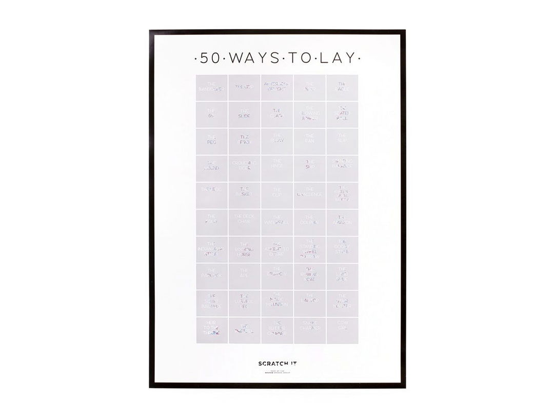 Cincizeci de pozitii pentru seri de neuitat, ce se lasa descoperite rand pe rand, adunate intr-un poster razuibil fara inhibitii.