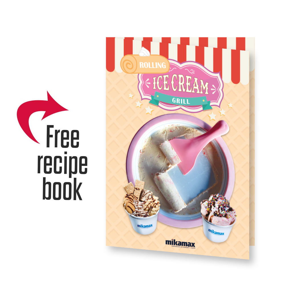 Nu trebuie sa pui niciun aparat in priza ca sa obtii rulourile irezistibile. Pur si simplu introduci tava in congelator, o lasi sa se raceasca bine, dupa care o scoti si torni in ea amestecul de inghetata (amestecul pe care l-ai preparat in timp ce tava era la congelator, folosind cartea de retete inclusa in pachet). Cand amestecul s-a intarit, ia o spatula si impinge incet inghetata, rostogolind-o cu dichis pana cand ajungi la capatul tavii. Aseaza inghetata tailandeza rolls in cupe, decoreaza cu bomboane, frisca, fructe, ciocolata, topping, decoratiuni (pe care le-ai facut cu ajutorul formelor incluse) si savureaza. Nu-i asa ca-ti ploua-n gura deja?