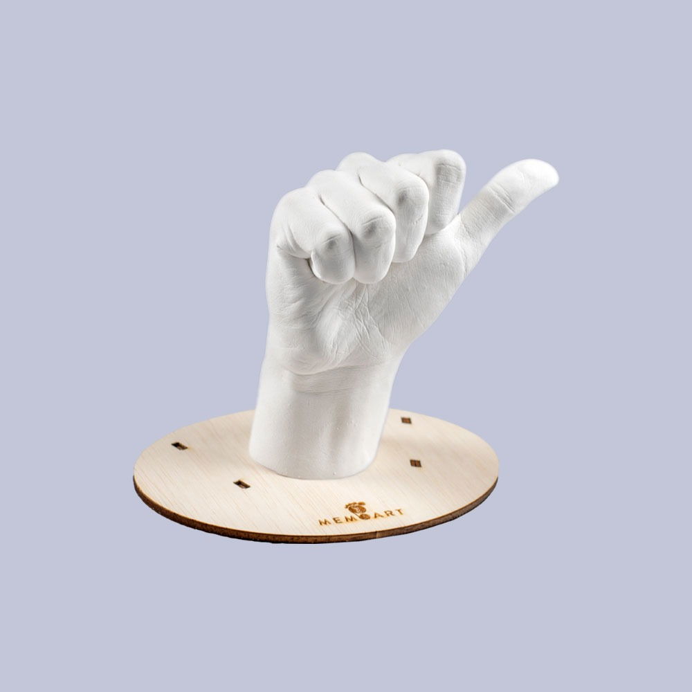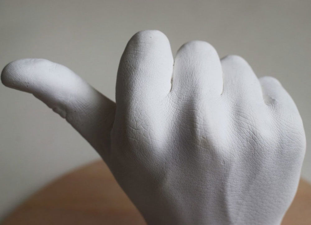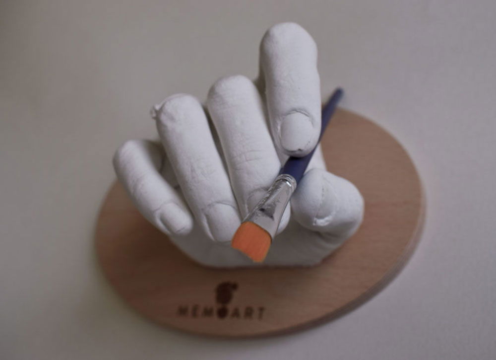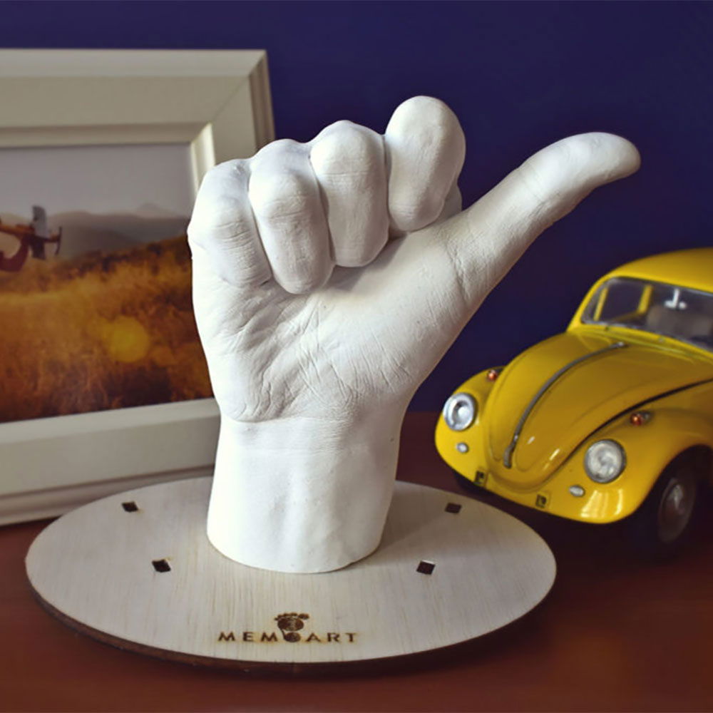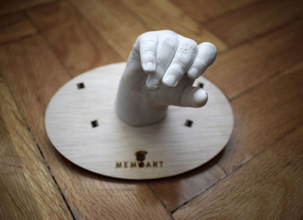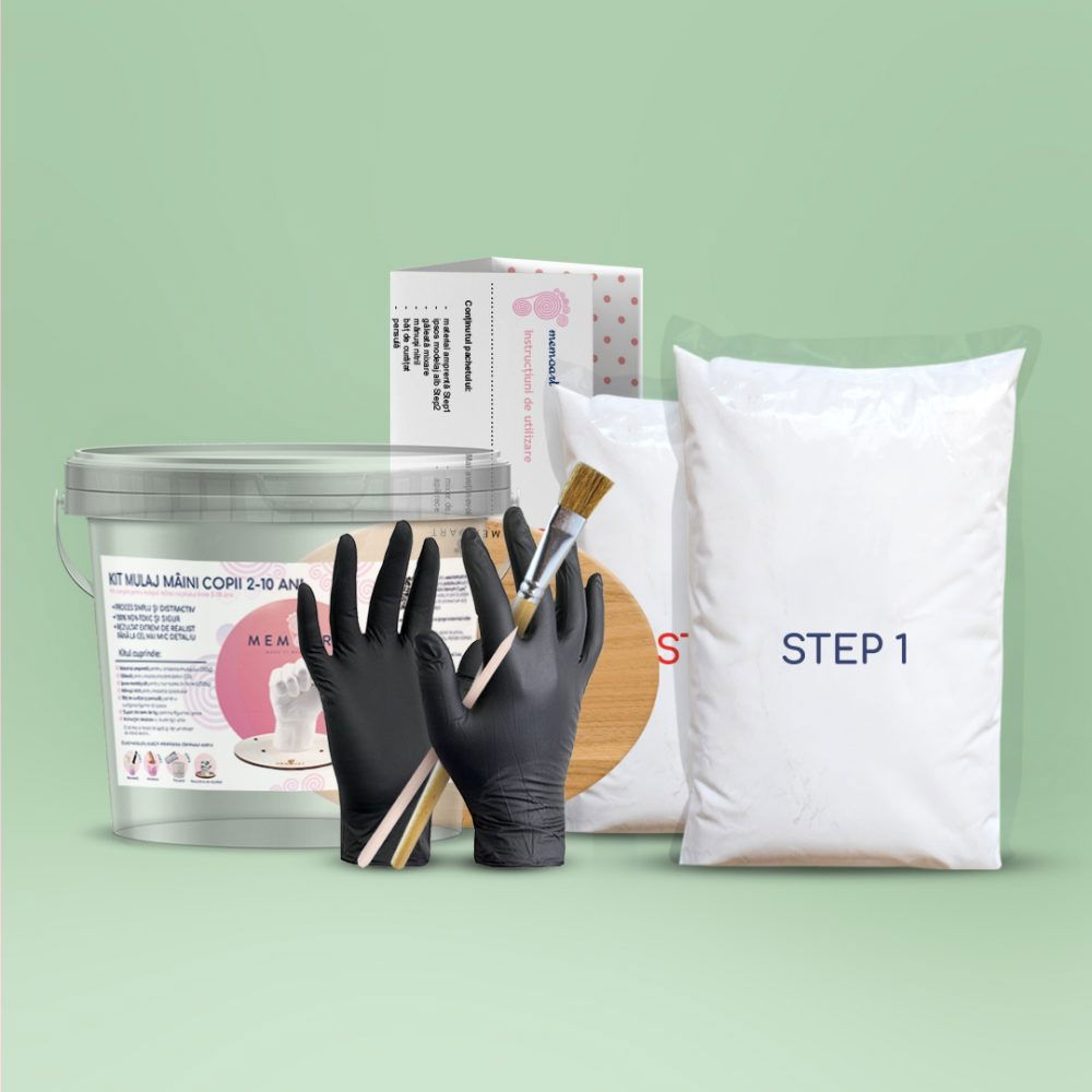 Prima data amesteci materialul de amprenta cu apa, folosind un mixer electric manual. Apoi asezi mana copilului in materialul obtinut - o sa se intareasca repede materialul, asa ca nu trebuie sa-ti faci probleme daca cel mic isi misca mana (nu va compromite opera de arta). Cand materialul s-a intarit, scoti mana copilului. In continuare te ocupi de matrita - torni in ea ipsosul de modelaj. Astepti 24 de ore si parararam: ai obtinut cea mai frumoasa si dulce figurina; cea cu mana copilului tau. De acum poate creste in voie; amintirea manutei sale va ramane etern asezata in biblioteca sau pe etajera, la vedere.