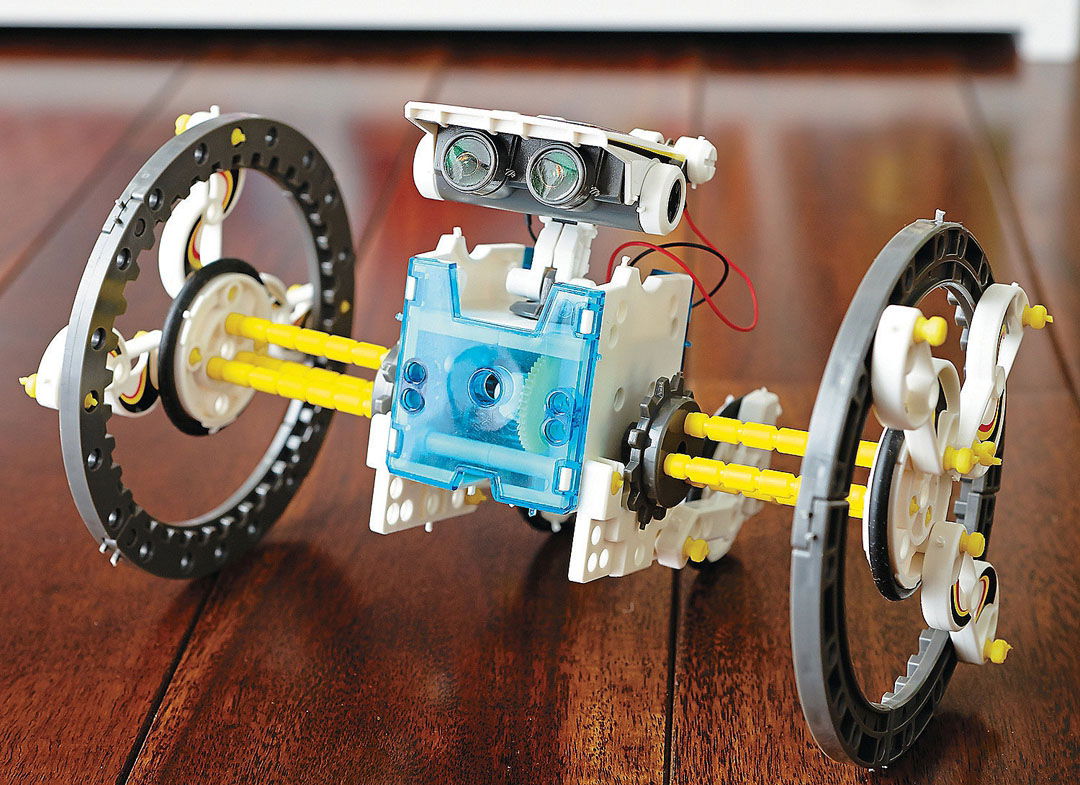 • Robotul solar este un gadget nou care functioneaza in totalitate cu energie solara • Poate fi ansamblat in 14 moduri diferite, fiecare mai interesanta si mai creativa ca cealalta • Poti folosi robotul pe apa si pe uscat si poti schimba directia cu ajutorul polaritatii ajustabile • Exista doua niveluri de asanblare: unul pentru amatorii care vor sa isi testeze ablitatile tehnologice si un nivel pentru cei mai experimentati • Contine manual de instructiuni