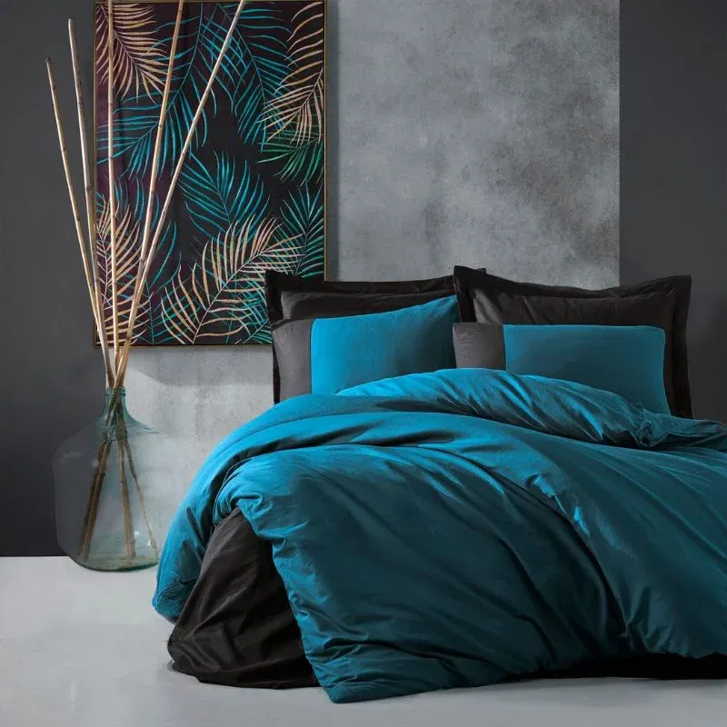 Fabricat din bumbac ranforce de calitate premium, acest set de lenjerie garanteaza un somn odihnitor si un aspect sofisticat al patului. Culoarea albastru petrol adauga un aer modern si rafinat dormitorului tau, fiind usor de asortat cu decoruri minimaliste sau clasice.