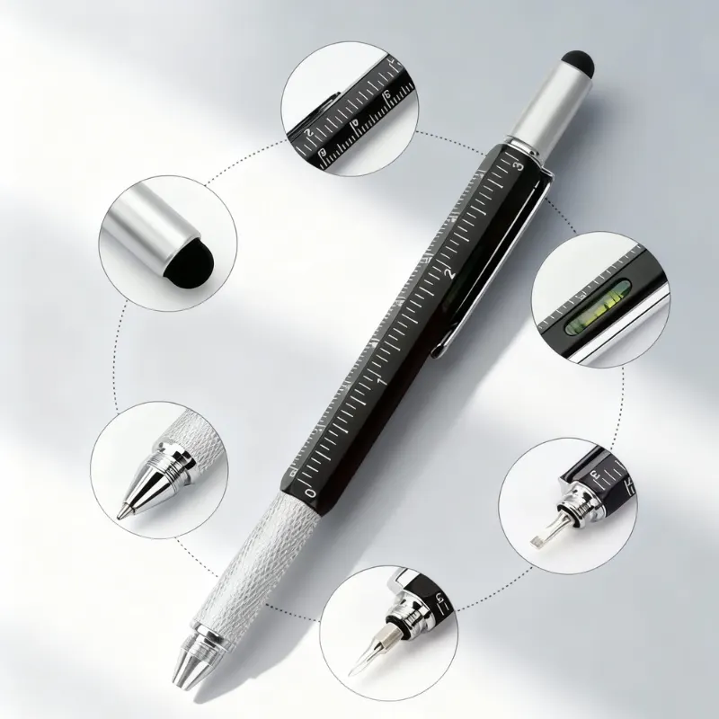 Utilizare: In primul rand pe langa functia sa comuna, pixul are un capat special pentru ecranul tactil. De asemenea are in componenta sa doua capete diferite de surubelnita, de care niciodata nu se stie cum iti pot fi de folos. La exteriorul pixului a fost incorporata o nivela, iar pe partea opusa se regaseste o rigla. Cu siguranta odata ce detii aceasta unealta magica vei deveni Superman-ul grupului tau de prieteni, mereu acolo cu o solutie. Vei impresiona prin capacitatea ta de a te adapta rapid la orice circumstanta speciala.