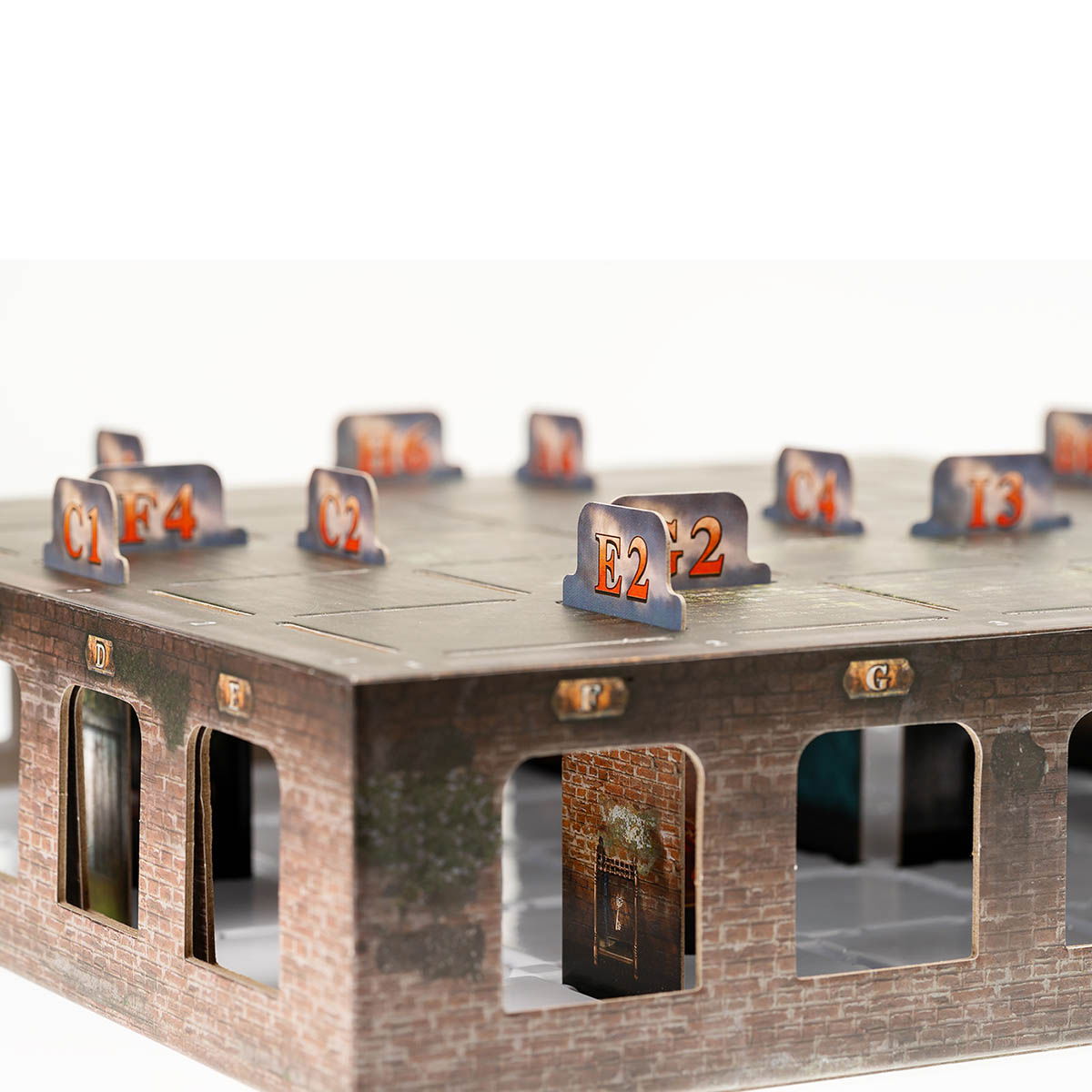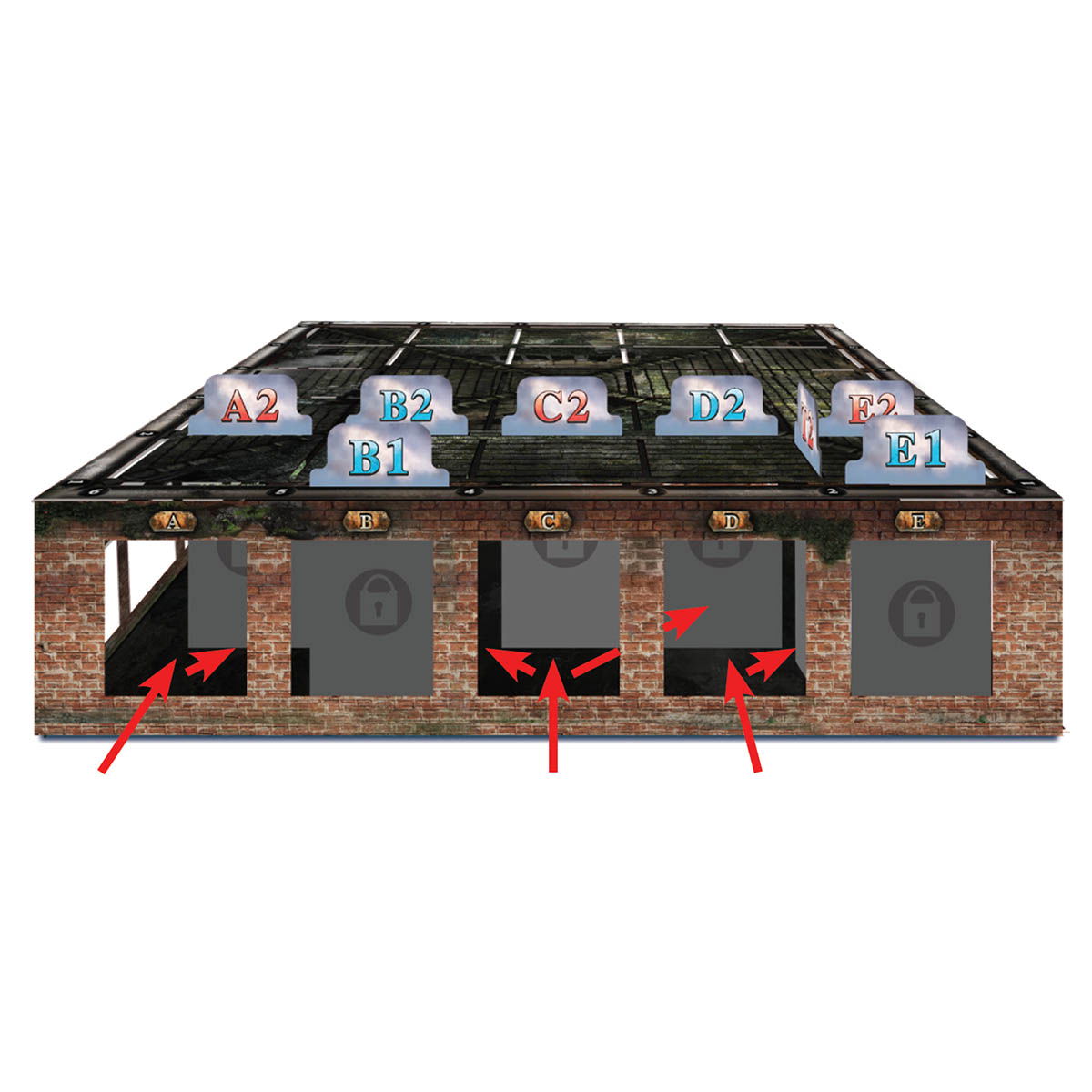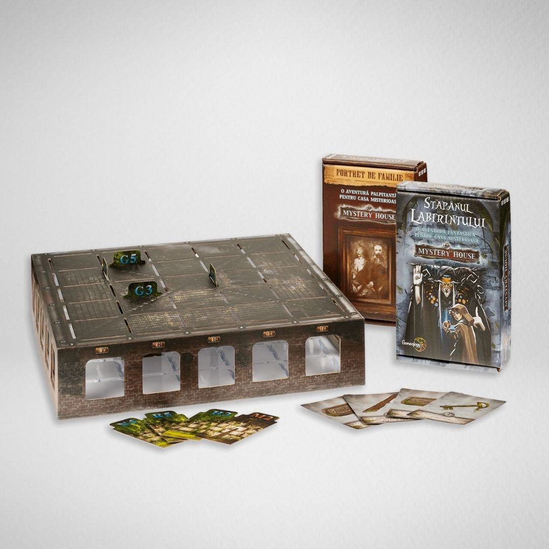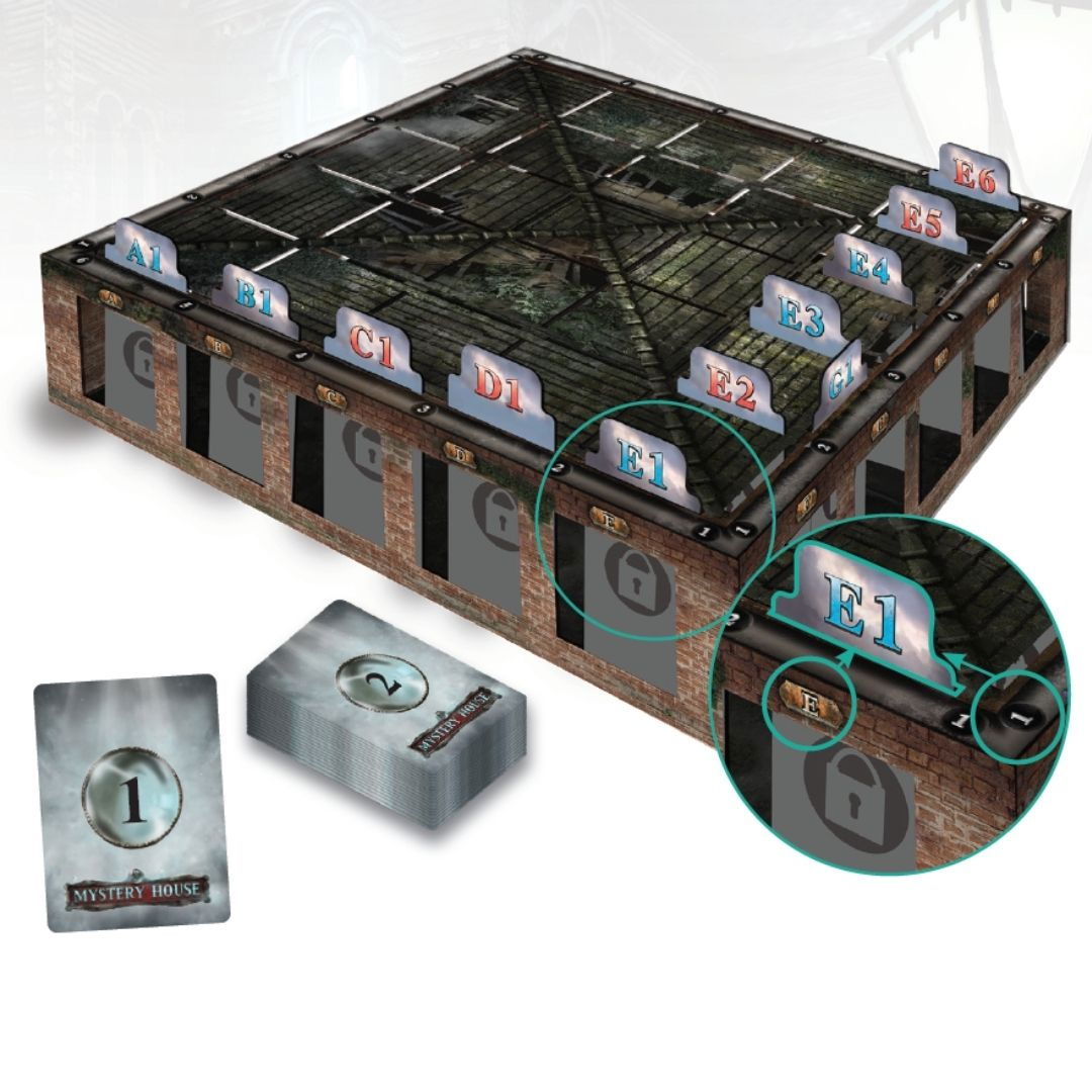 2. Alegeti o Aventura pe care sa o jucati. Scoateti componentele din acea cutie. Plasati Cartonasele Locatie ce contin coordonatele de culoare albastra in deschizaturile corespondente de deasupra Casei si Cartonasele Obiect cu fata in jos pe masa, fara a le amesteca.