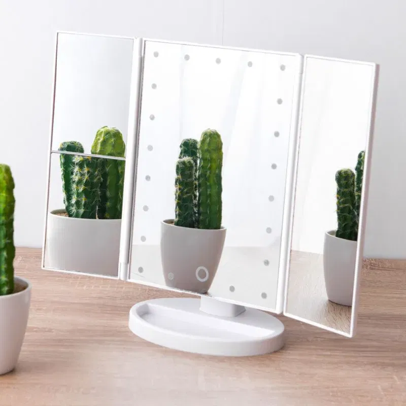 Oglinda machiaj pliabila, cu lumini led I'm gorgeous este alcatuita din patru tipuri diferite de oglinzi, fiecare avand unghiuri diferite de vizualizare, ce permit marirea subiectului in detaliu, pe diferite nivele. Astfel, poti sa analizezi in detaliu pana la cele mai subtile amanunte, mult mai confortabil fata de cum o faceai pana acum, fara sa te apropii si sa te indepartezi de aceasta.