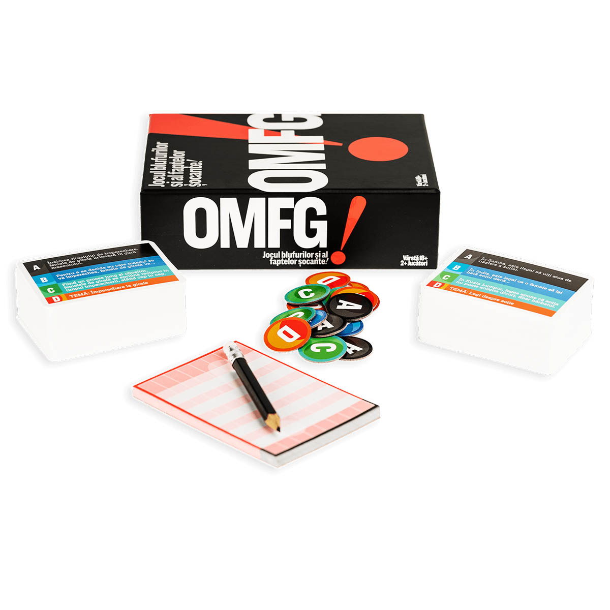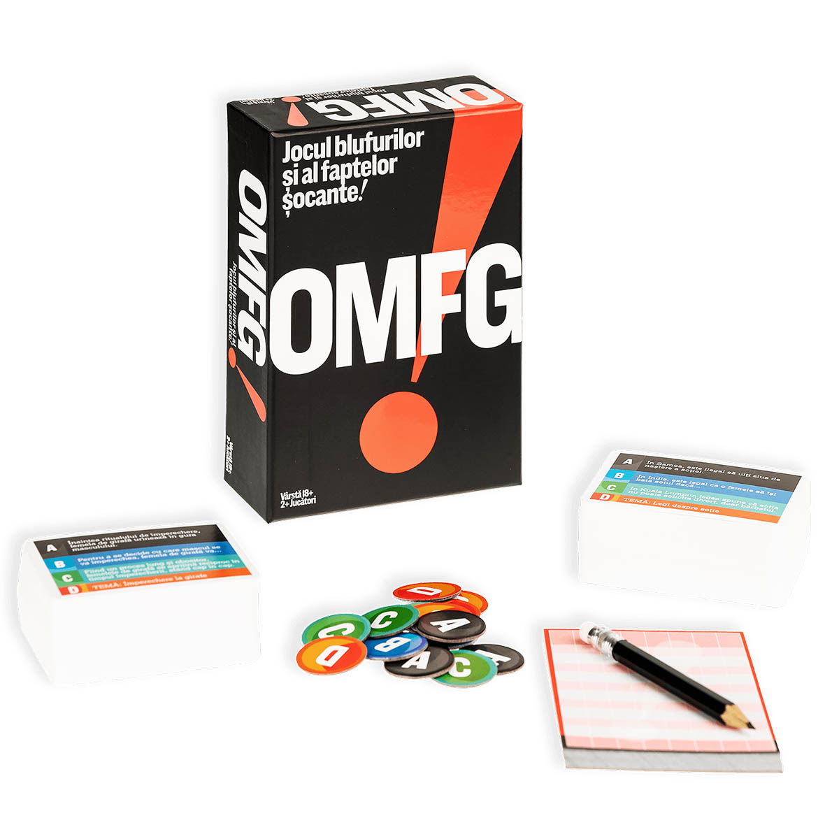 OMFG! este jocul perfect pentru petreceri sau intalniri cu prietenii si este recomandat adultilor cu mintea deschisa, cu imaginatie bogata si care pot mirosi minciunile de la mare distanta!