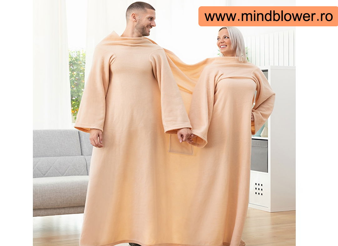 Va prezentam un produs care are tocmai acest rol, de a aduce indragostitii impreuna, fiind o idee perfecta de cadouri amuzante pentru ei. Se numeste Patura cu maneci pentru cupluri si are capacitatea de a aduce mai aproape cuplurile si de a le ajuta sa se atinga si sa se conecteze in cazul in care au uitat sa faca asta.