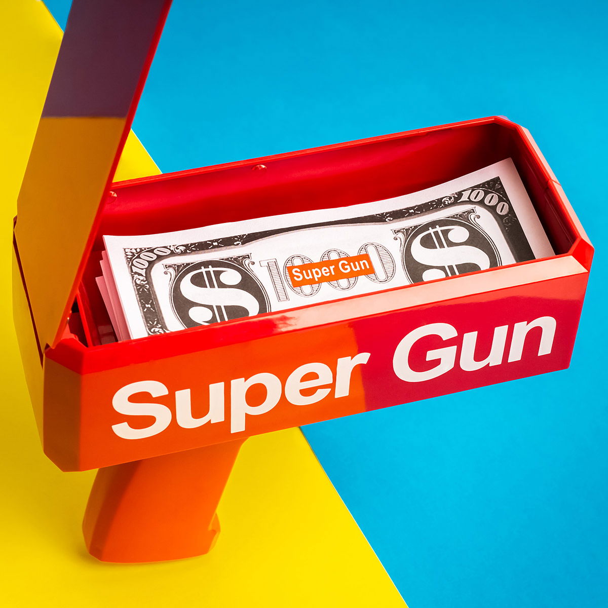 Pistolul cu bani este perfect pentru orice petrecere, teambuilding, zi de nastere, seara in club sau chiar la petrecerea de Craciun a companiei. Ca sa ii arati sefului ca nu esti atat de fraier pe cat credea el.