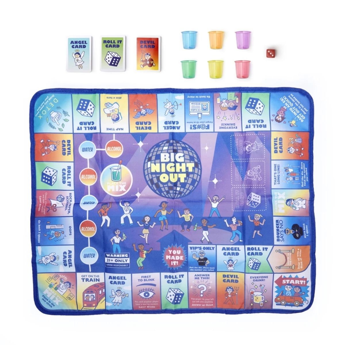 Bineinteles, acest Joc de petrecere Big Night Out este un joc al responsabilitatii, fiind recomandat in mod exclusiv celor care au implinit varsta legala a maturitatii in Statele Unite sau apogeul varstei de 21 ani. Sigur, poate fi o alegere exceptionala pentru a da pe spate personajul principal dintr-un majorat sau un cadou perfect pentru el, pentru cuplurile care fac totul impreuna etc.