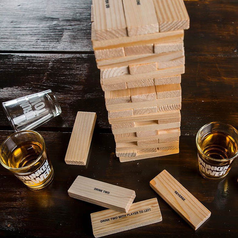 Aduna-ti prietenii, umple barul si distrati-va cu setul Turnul Petrecerii, unul din cele mai antrenante jocuri de petrecere (jocuri cu bere sau shoturi) care va garanteaza o seara memorabila... sau amnezie temporara, in functie de cate sticle de tequila se vor goli. Setul Turnul Petrecerii este format din patru pahare de tip shot si 60 de blocuri de lemn imprimate cu provocari haioase.