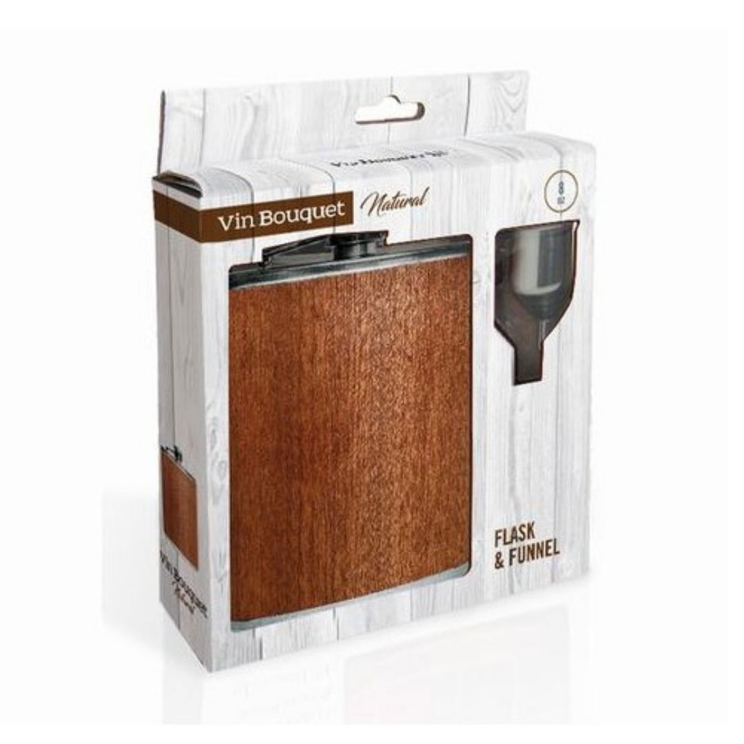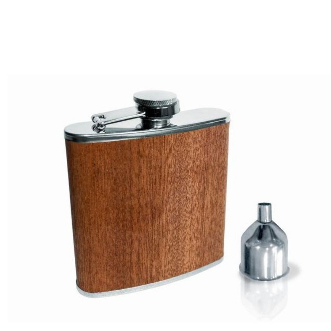 Dat fiind pleosca din otel inoxidabil imbracata in hainuta de lemn, aceasta se va transforma intr-un accesoriu chic si practic pentru iubitorii de natura, de opulenta si de fiabilitate in acelasi timp. Are si o capacitate generoasa de depozitare care-i va permite sa se bucure de un whisky pe cinste pana se va intoarce acasa din expeditia vietii sale. Este dotat si cu o palnie din inox, construita special pentru a doza cu atentie bautura favorita.
