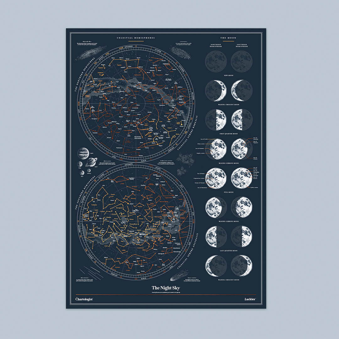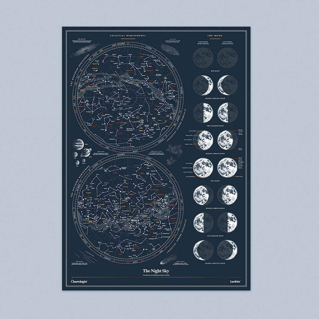 Prin interediul Poster razuibil The Chartologist Cer instelat vei descoperi cu usurinta constelatiile, cat si zodiile, reusind sa-ti citesti destinul in stele si cea mai buna perioada in care vei putea infaptui magia pentru sanatate, iubire si prosperitate, in functie de pozitia si forma lunii. Vei putea afla cel mai oportun moment pentru manevrarea astrelor si a constelatiilor in propriul tau avantaj prin intermediul acestui poster complet cu si despre cealalta galaxie.