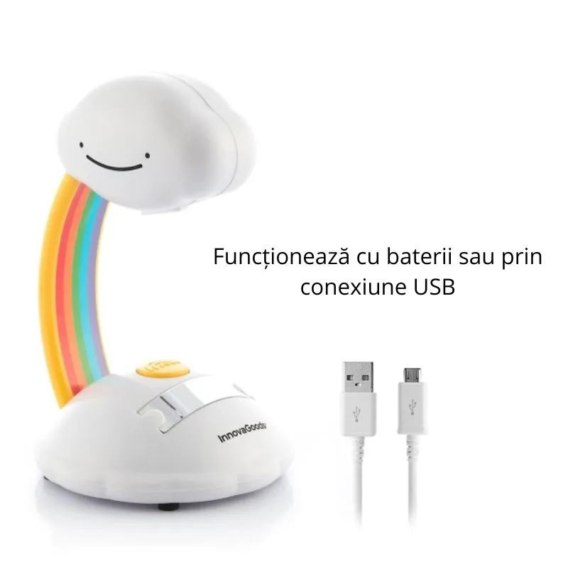 Un gadget ideal pentru copii moderni sau pentru versiunile copilaroase ale adultilor. Se apasa butonul proiectorul cu norisor, dupa ce acesta a fost conectat prin USB si inzestrat cu 4 baterii AAA. Lumea viselor de basm asteapta toti copiii la culcare!