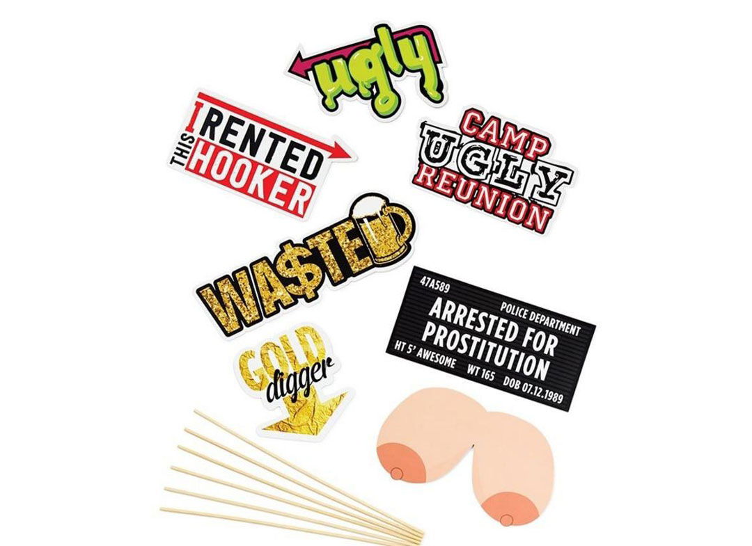 Utilizare: In copilarie era amuzant sa te strambi atunci cand faceai o poza cu gasca sau sa-i pui coarne celui de langa tine ridicand doua degete. Acum ai o recuzita variata si poti folosi un cartonas cu Camp Ugly Reunion pentru o fotografie haioasa cu fetele sau chiar un props cu textul Wasted alaturi de baieti. Chiar si cei mai seriosi dintre invitati vor fi tentati sa foloseasca piesele din setul de Propsuri Photo Booth Amuzante 7. Cei cu simtul umorului vor fi extrem de incantati sa isi poata pune imaginatia la treaba iar rezultatul va fi imortalizat pentru eternitate.