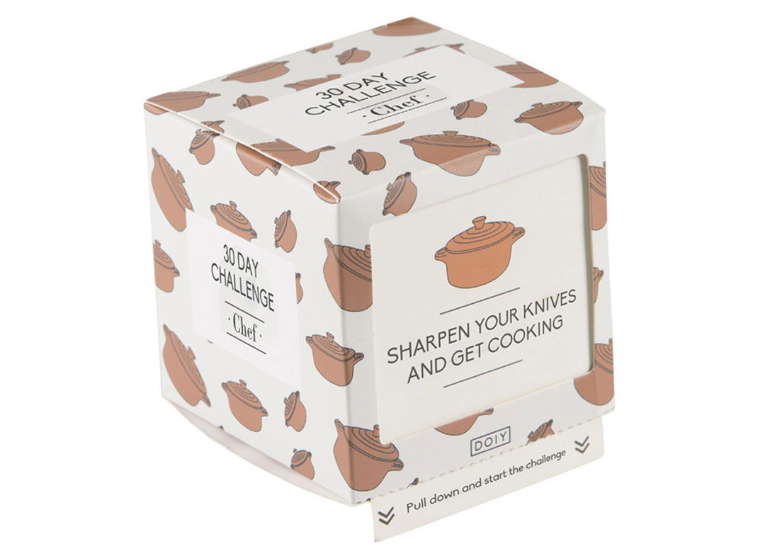 De ce sa fii tentat sa descoperi Provocarea Bucatarului - 30 Days Chef Challenge? Cand erai mic, tu ce raspundeai la intrebarea „Puiule, tu ce-o sa te faci cand o sa fii mare?”. Iti ingustai ochii, puneai degetul aratator in gura si, dupa ce-l imbibai bine de saliva, dadeai un raspuns de ori ii puneai pe ganduri pe cei mari, ori incepeau sa te aplaude. Sunt o duzina de variante de reply si apoi, asta nu e o intrebare la care sa ajungi sa raspunzi, cumva, gresit. Uite cateva raspunsuri mai deocheate, care ne-au atras noua atentia: ca tata, ca poate musafir, ca pisica, un copac siiiii – CHEF. Chef, ai citit? Dar ce te faci cand ti-ai dat acolo, in copilarie, cuvantul si apoi ai uitat de el? Daca ai crescut mare si inca n-ai ajuns ceea ce ti-ai dorit tu de mic, afla ca ti se mai da o sansa. Numai ce s-a inventat o smecherie care sa rezolve chestiunea asta, Provocarea Bucatarului - 30 Days Chef Challenge. Un cub provocator, care are idei de retete mai bune decat ai avut tu vreodata. Pune sortul pe tine, ascute cutitele si atentie mare c-ai sa fii plimbat prin marile bucatarii ale lumii. Sau ia 30 Days Chef Challenge si transforma-le in cadouri pentru el, in caz ca vine ziua lui si nu stii ce sa-i mai oferi de data asta. Intr-un ambalaj compact si avand un design simpatic, cele 30 de retete te vor ajuta sa iti dezvolti, in sfarsit, talentul din copilarie. N-o sa te plictisesti in niciuna dintre zile si-o sa stii ca la finalul marii provocari a vietii tale, sortul pe care l-ai primit cadou la ultima aniversare poate fi, intr-un final, exploatat de-un Chef adevarat. Iata cum 30 Days Chef Challenge poate fi o idee nemaipomenita cand vine vorba despre cadouri pentru el!
