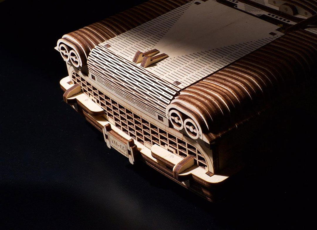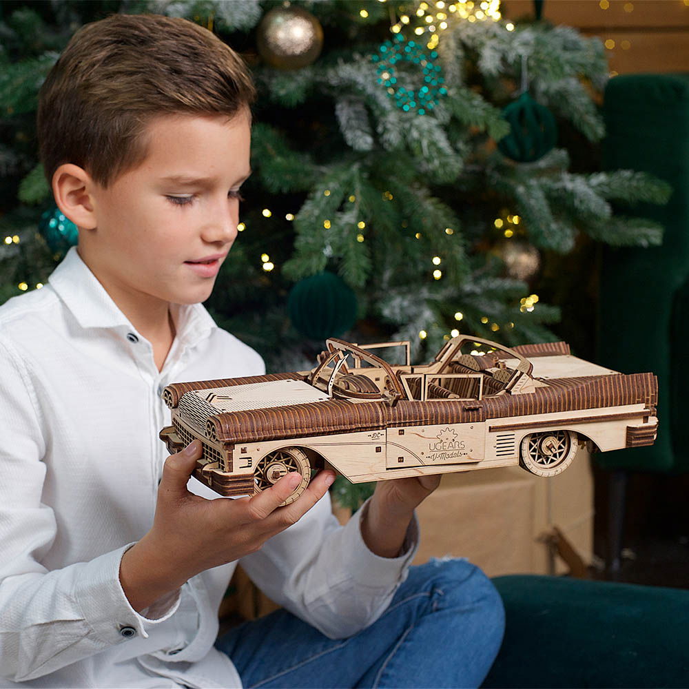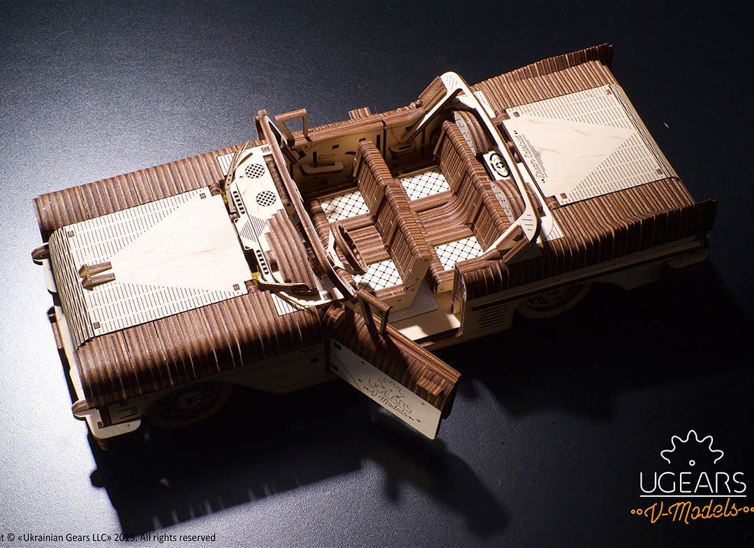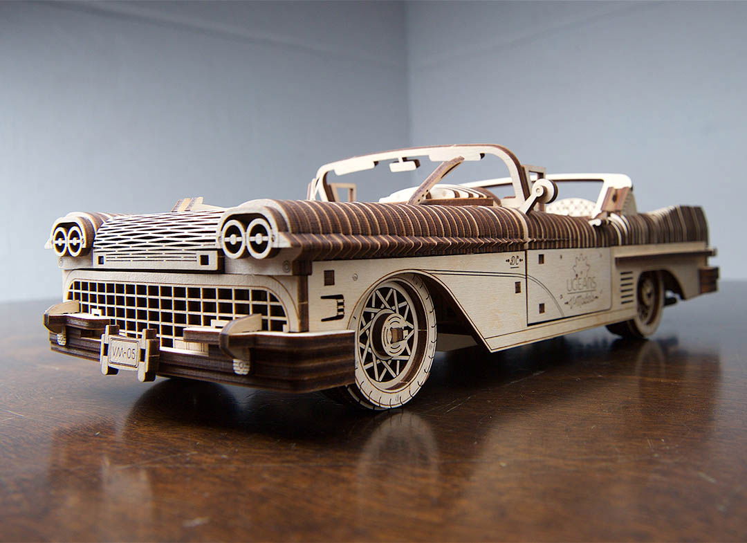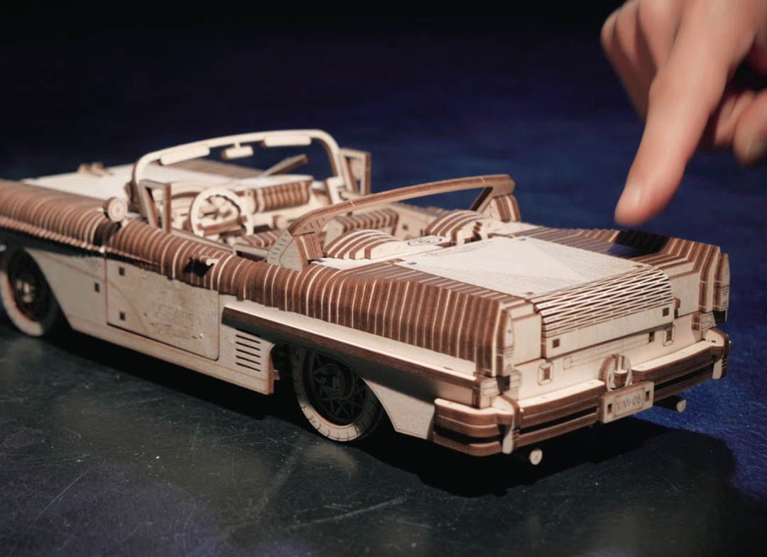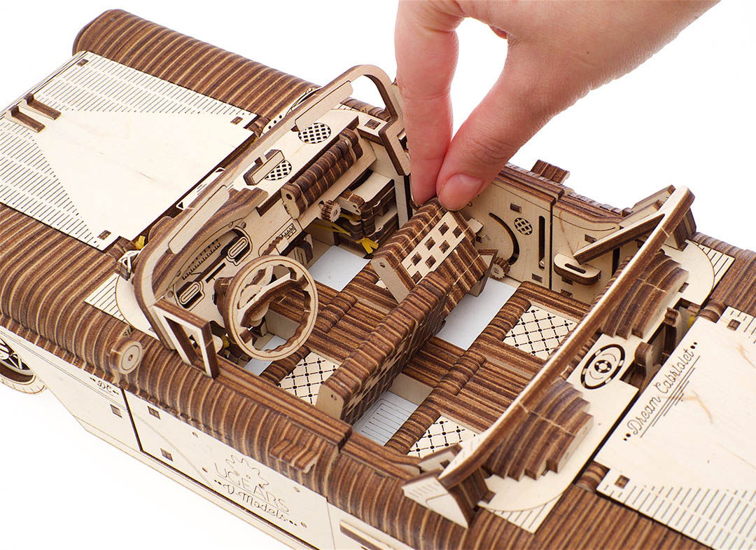 Utilizare: Dupa asamblarea tuturor pieselor, puzzle-ul devine o masina luxoasa de epoca, functionala si foarte frumoasa. Toate piesele sunt gravate, iar masina contine zeci de accesorii minuscule ce ii sporesc aspectul realist.