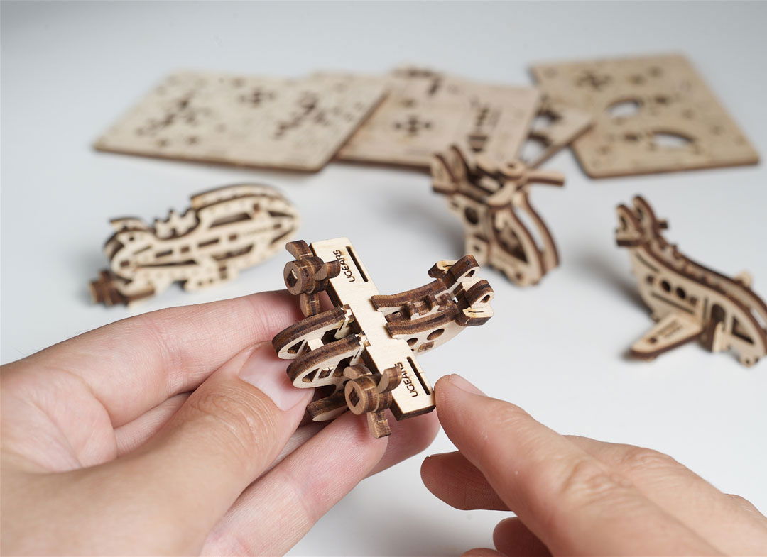 Un cadou pentru bărbaţi şi un cadou pentru femei în aceeaşi măsură, ineditul Puzzle 3D Fidget Avioane din Lemn Ugears este recomandat tuturor celor care ştiu să aprecieze senzaţiile tari şi un nivel ridicat de adrenalină. Chiar dacă sunt mecanice, toate cele patru piese sunt mobile. Acceseaza-instructiuni de asamblare a produsului