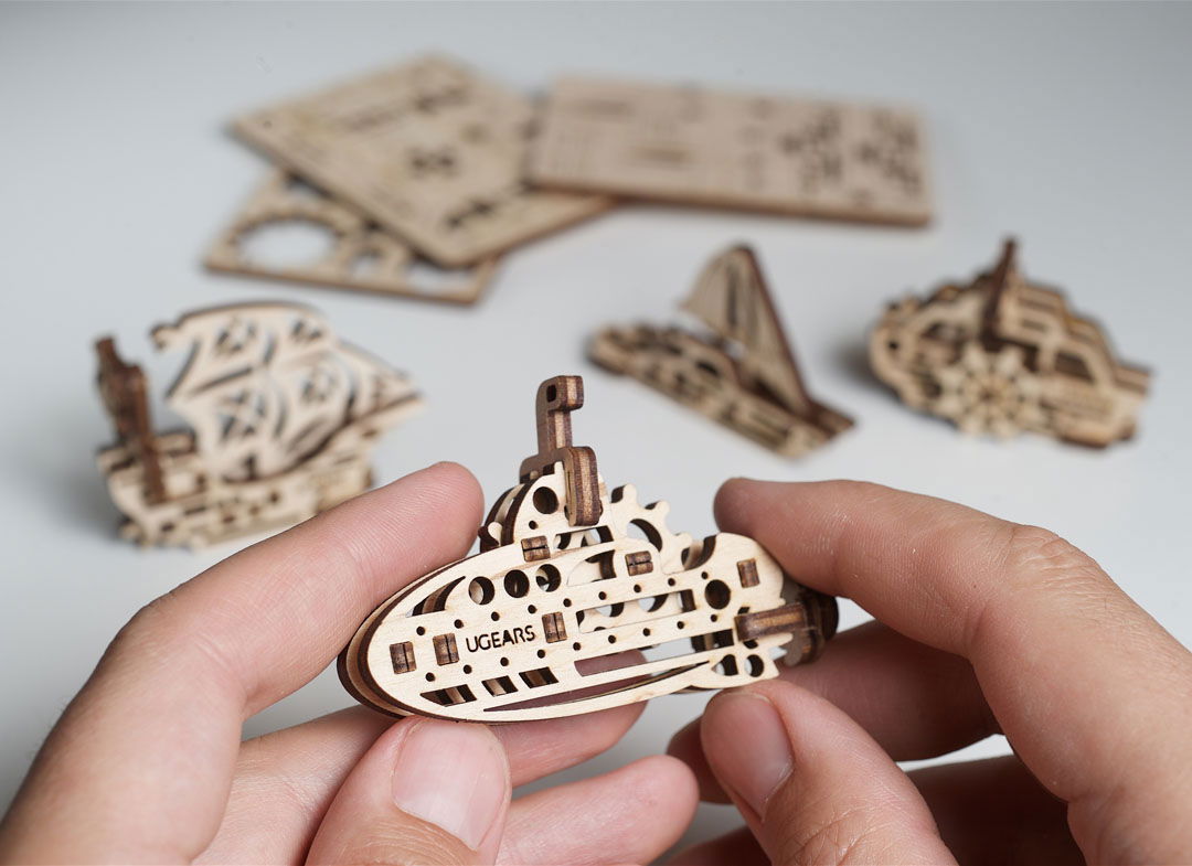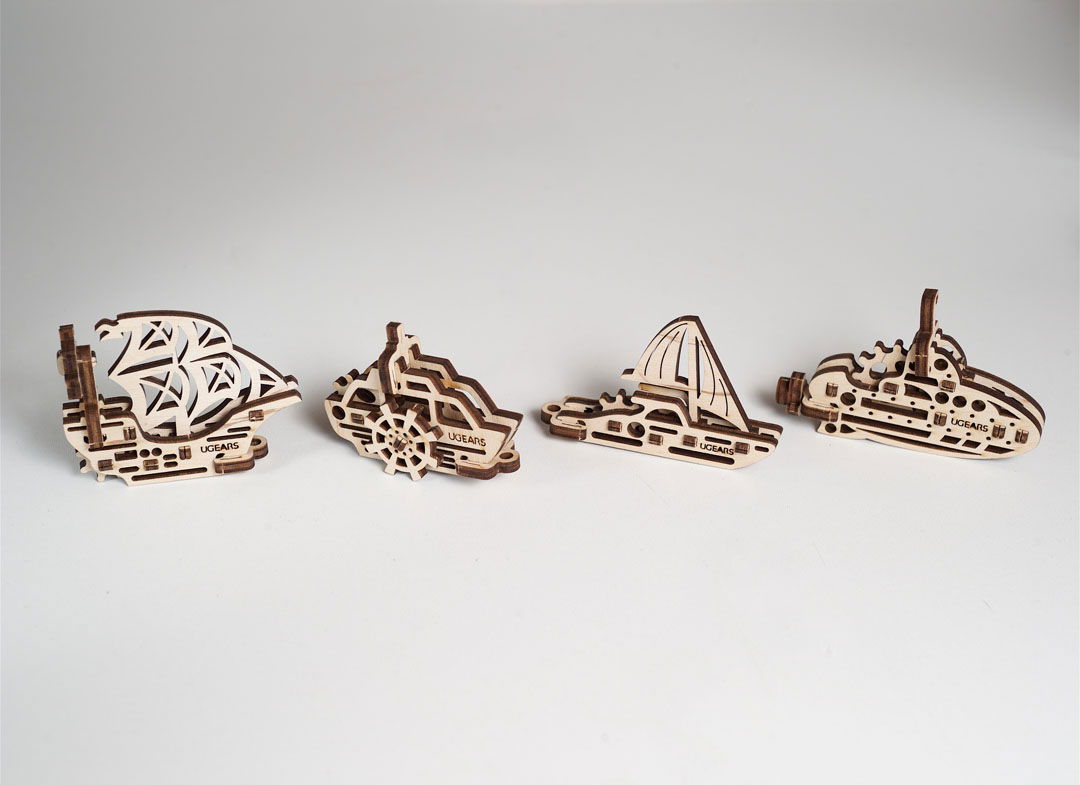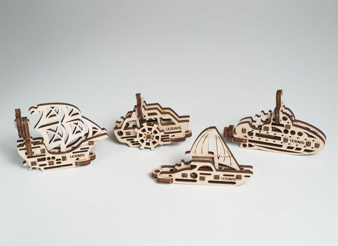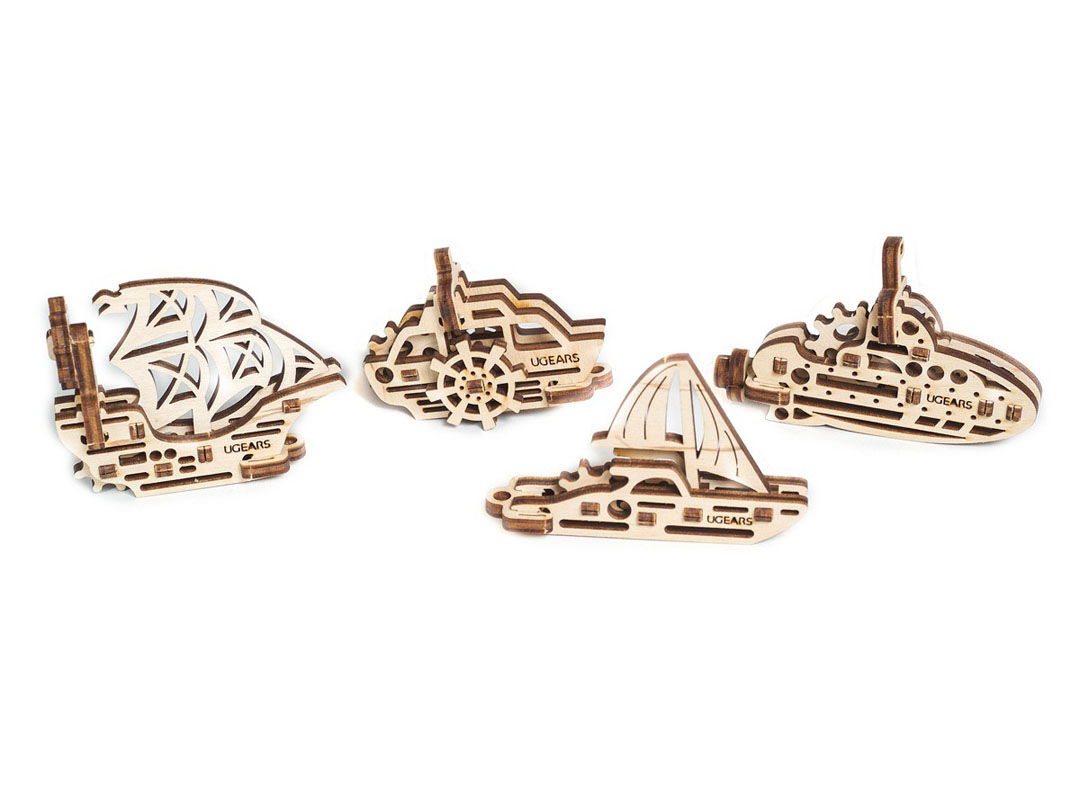 Realizate exclusiv din lemn din surse sustenabile, iahtul, barca cu pânze, submarinul şi barca se asamblează foarte uşor şi sunt mecanice. Pentru că nu-i aşa, nişte ambarcaţiuni de mişcare prin excelenţă chiar nu aveau cum să fie statice. Acceseaza-instructiunile de asamblare a produsului