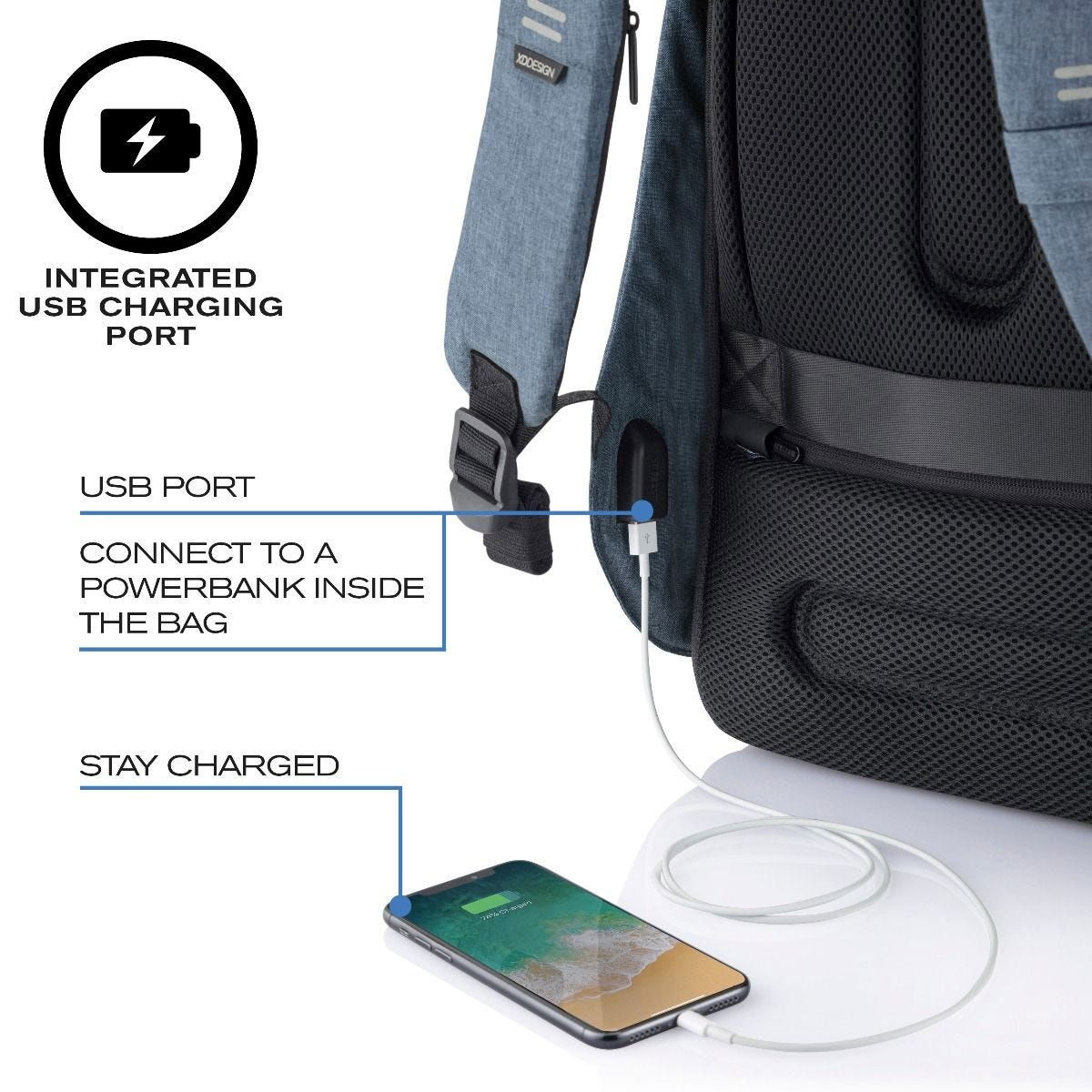 Acesta este un rucsac Bobby 100% ORIGINAL! Portul USB nu este la vedere in mers, ci se afla ascuns intre rucsac si sold, o caracteristica importanta ce diferentiaza Originalul Bobby de orice alte tentative de imitatie. Bobby original este unul singur si este 100% de calitate, cu o constructie robusta si ferma. Iti garantam ca acesta este The Real Bobby!