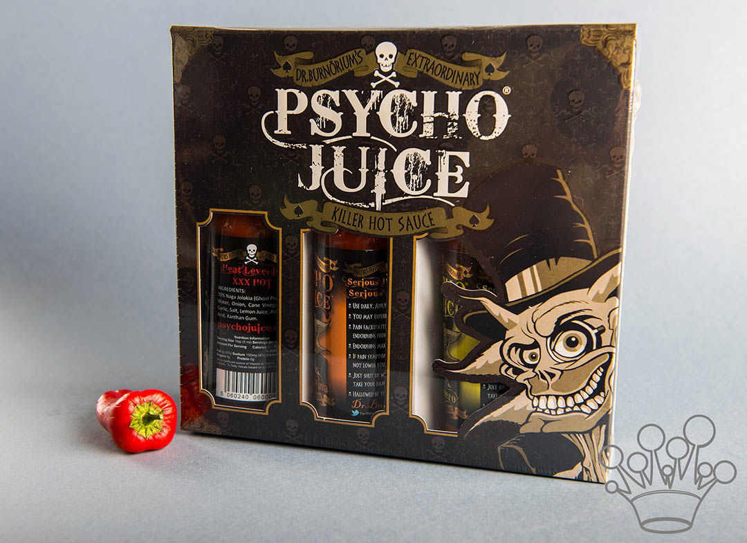Setul 3 Sosuri extrem de picante Psycho Juice chiar te poate scoate din minti si da dependenta: odata incercat, va fi greu sa te intorci la banalitati precum ardeiul iute clasic sau sosul sriracha.