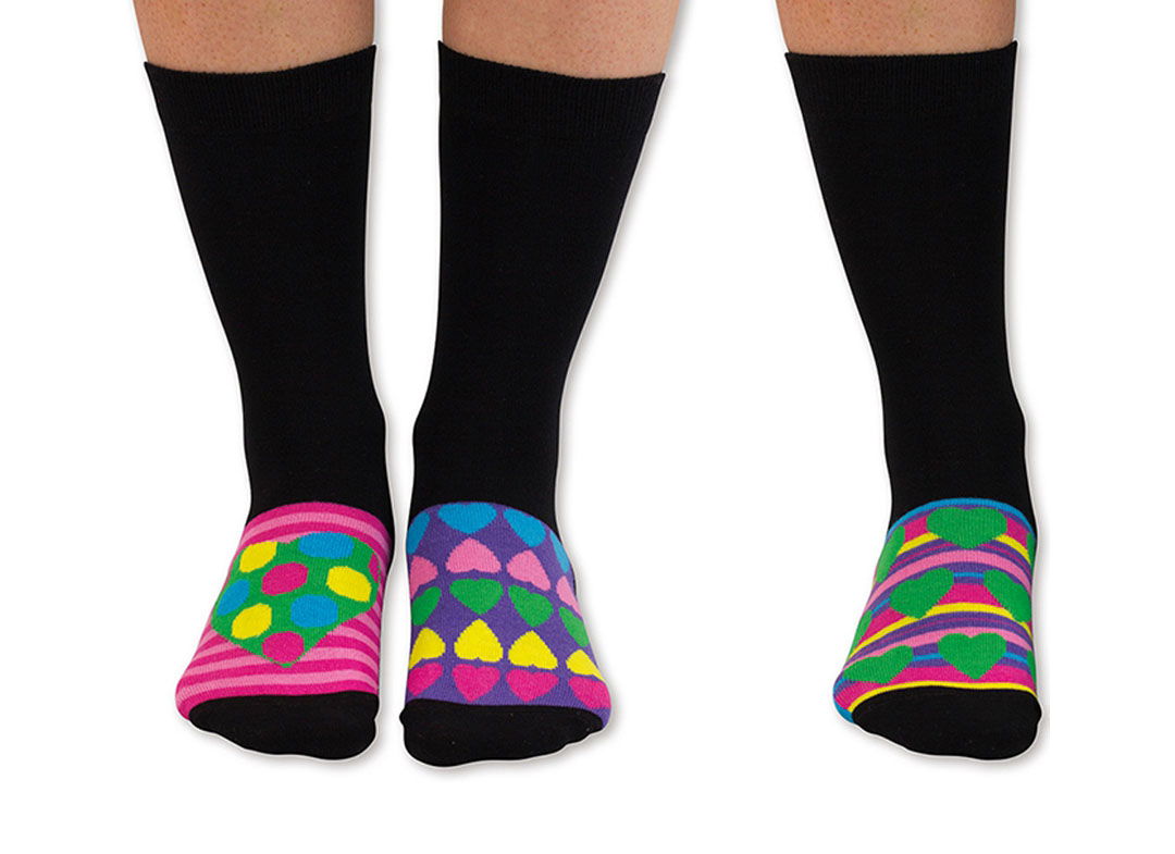 • Marime universala pentru Ea 37 - 42 • Setul contine 6 sosete super ultra colorate si vesele, pe care poti sa le combini cum vrei tu • Cadoul perfect pentru cei care stiu sa vada partea plina a paharului • 15 combinatii de inimioare super colorate • 80% Bumbac (deci o sa-ti respire picioarele) • 19% Poliamida • 1% Elastan (pentru ca trebuie sa incapa in ele si cei cu talpa peste media normala)