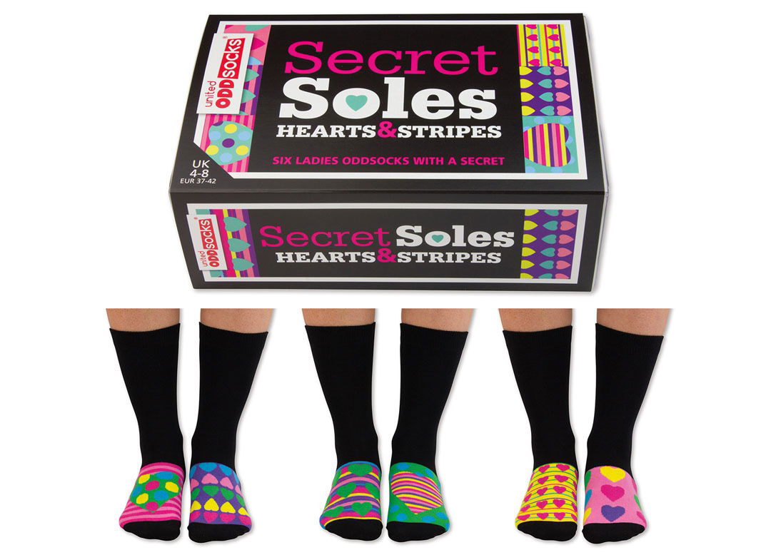 O doza de mister n-a facut rau nimanui. Tuturor ne place sa pastram cateva lucruri in secret, nu-i asa? De aceea ne-am gandit sa aducem aceste Sosete cu Inimioare Ascunse, create special pentru cei carora le place sa-si pastreze fanteziile colorate intr-un loc ascuns. Cel putin pana in momentul in care se descalta de ele. Iar asta e partea cea mai tare la aceste sosete. Pare ca porti niste sosete simple, negre, iar in momentul in care iti dai pantofii jos: surpriza! Inimioarele colorate isi fac loc alaturi de tinuta ta chic. In plus, nu trebuie sa stai prea mult pe ganduri sa te gandesti ce culoare sa porti pentru ca le au aproape pe toate. Niciuna din cele 6 sosete nu seamana cu cealalta, astfel ca tu poti face pana la 15 combinatii pline de inimi vesele, dungate, cu cercuri, roz, verzi, galbene si lista poate continua. Acum mai ramane sa te gandesti cui vrei sa dezvalui secretul tau. Ai grija, insa! Aceste Sosete cu Inimioare Ascunse sunt irezistibile. Pana te decizi sa le arati cuiva, ascunde-le intr-un loc de care numai tu sa stii. Acum ai acces la unul dintre cele mai dorite cadouri pentru iubita, ii poti pune inima la picioare.
