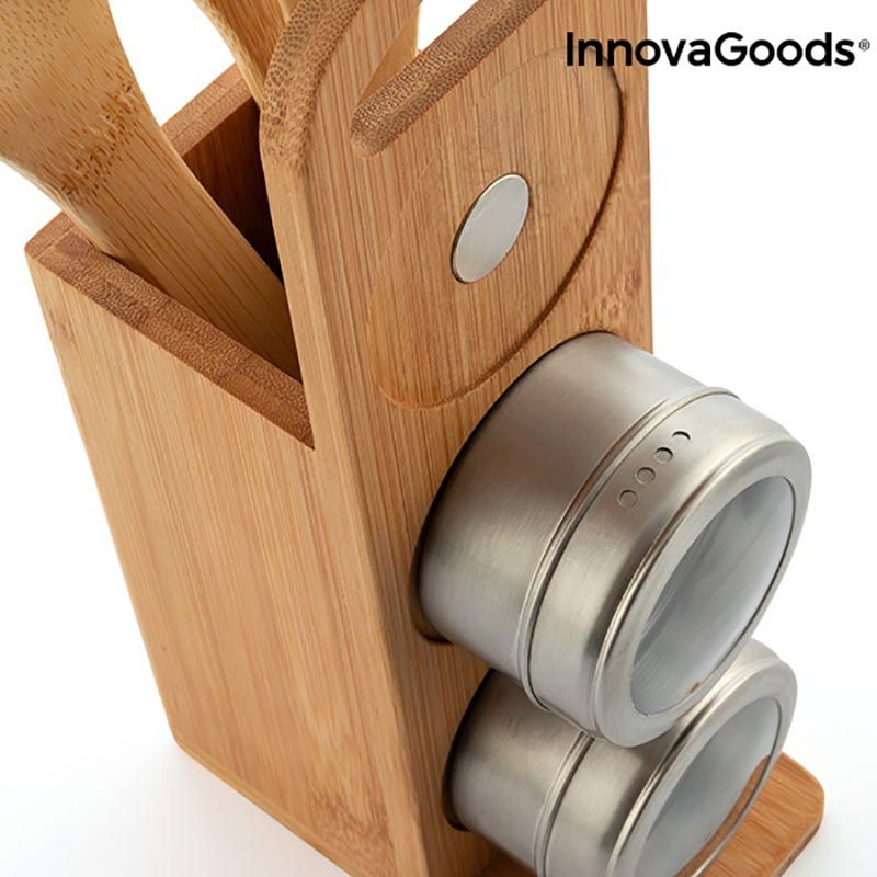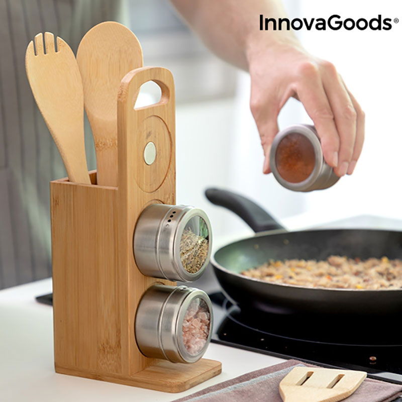 Set cadou 7 piese pentru bucatarie iti innobileaza zona de gatit si te inspira sa experimentezi preparate diverse. Lemnul de bambus e cald si super rezistent. Datorita aspectului practic, poti sa iei si sa asezi numaidecat ustensilele in slot. Suportul dispune si de un maner, incat poti sa-l muti dintr-o miscare pe blat, pe masa, pe raft sau unde vrei tu. Alege condimentele preferate, pune-le in aceste recipiente, inchide capacele si prinde-le vertical pe suport. Paprika rosie, sarea alba sau sarea roz, ierburile uscate, piperul negru etc - combina tu nuantele pentru un contrast teribil sau smooth.