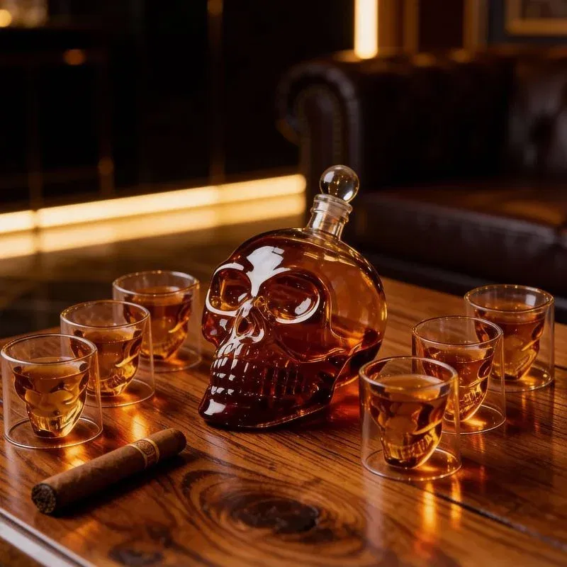 Asadar, descopera calitatea si misterul oferite de acest Set cadou Decantor sticla Craniu 1000ml, cu 6 pahare Free Spirits ori de cate ori il vei utiliza. Petrecerile tematice, intalnirile cu prietenii sau seriile in care vrei sa te rasfeti cu o bautura deosebita vor fi mult mai interesante datorita decatorului si paharelor deosebite.