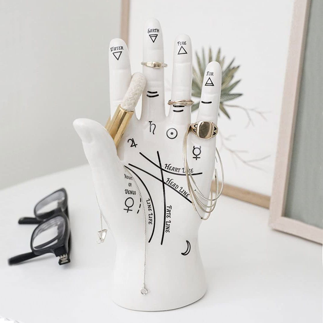 Este un element multifunctional, ideala pentru pasionatii de spiritualitate care vor sa se redescopere prin asimilarea unor noi cunostinte care le-ar putea deschide al treilea ochi al cunoasterii. Suport bijuterii Citeste in palma este o alegere discreta, dar pe atat de atipica si de interesanta, realizat din portelan lucios care te va impresiona prin mister si eleganta.