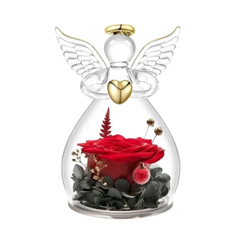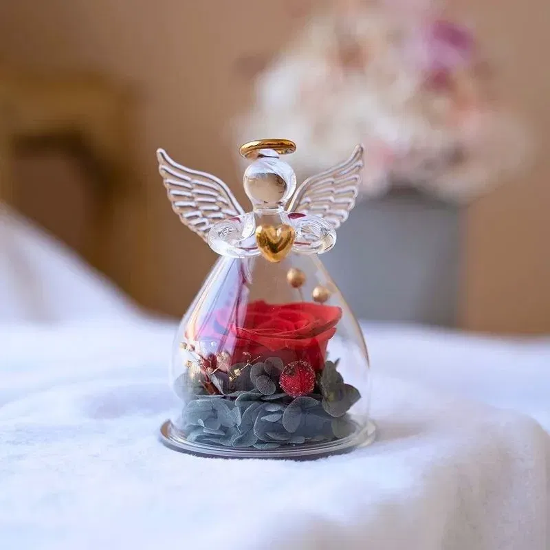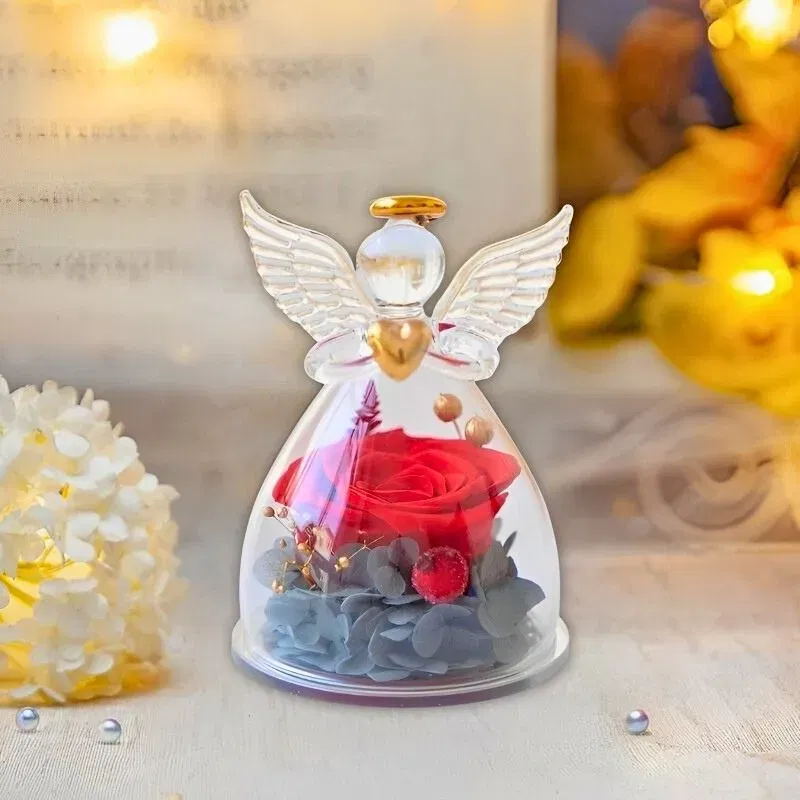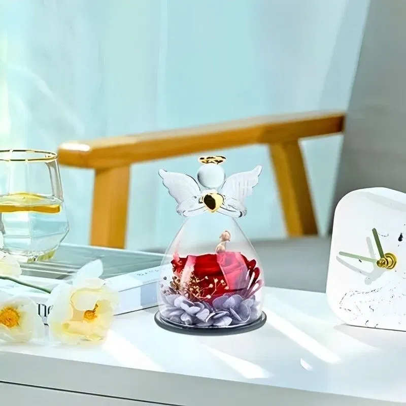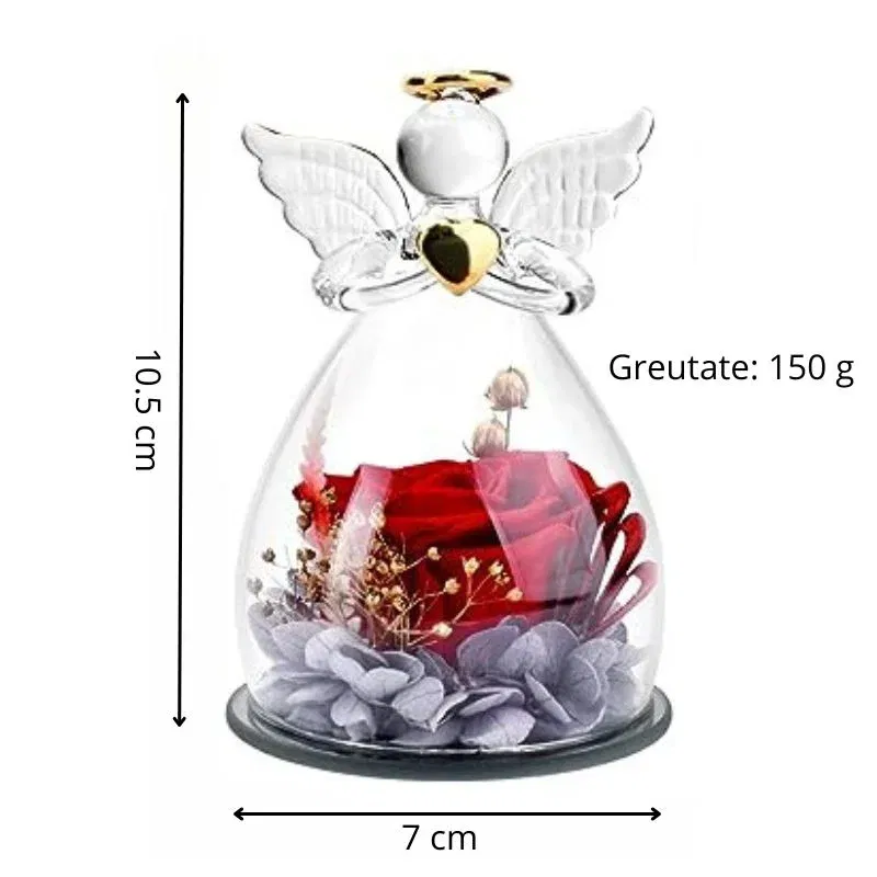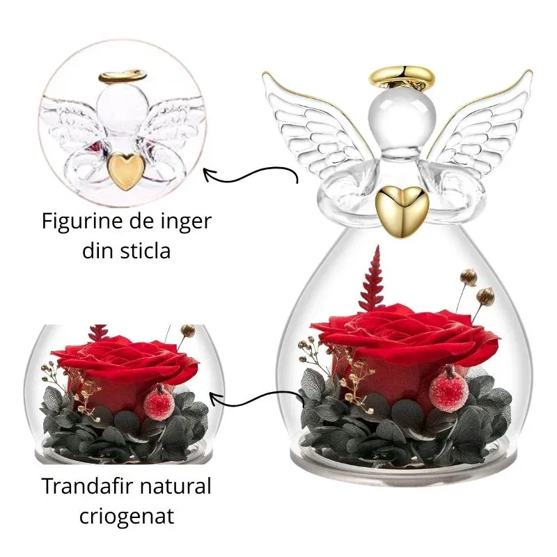 Utilizare: Inarmeaza-te cu un zambet dulce si daruieste-i cadou acest trandafir criogenic cu Inger pazitor. Pe masura ce il desface, poti acompania cadrul cu prajituri, sampanie, ba chiar si cu o cerere in casatorie de neuitat. La final va sfarsit pe birou sau pe noptiera si ii va oferi posibilitatea prezentei feminine sa retraiasca la nesfarsit acest moment unic in visele si trezirile sale.