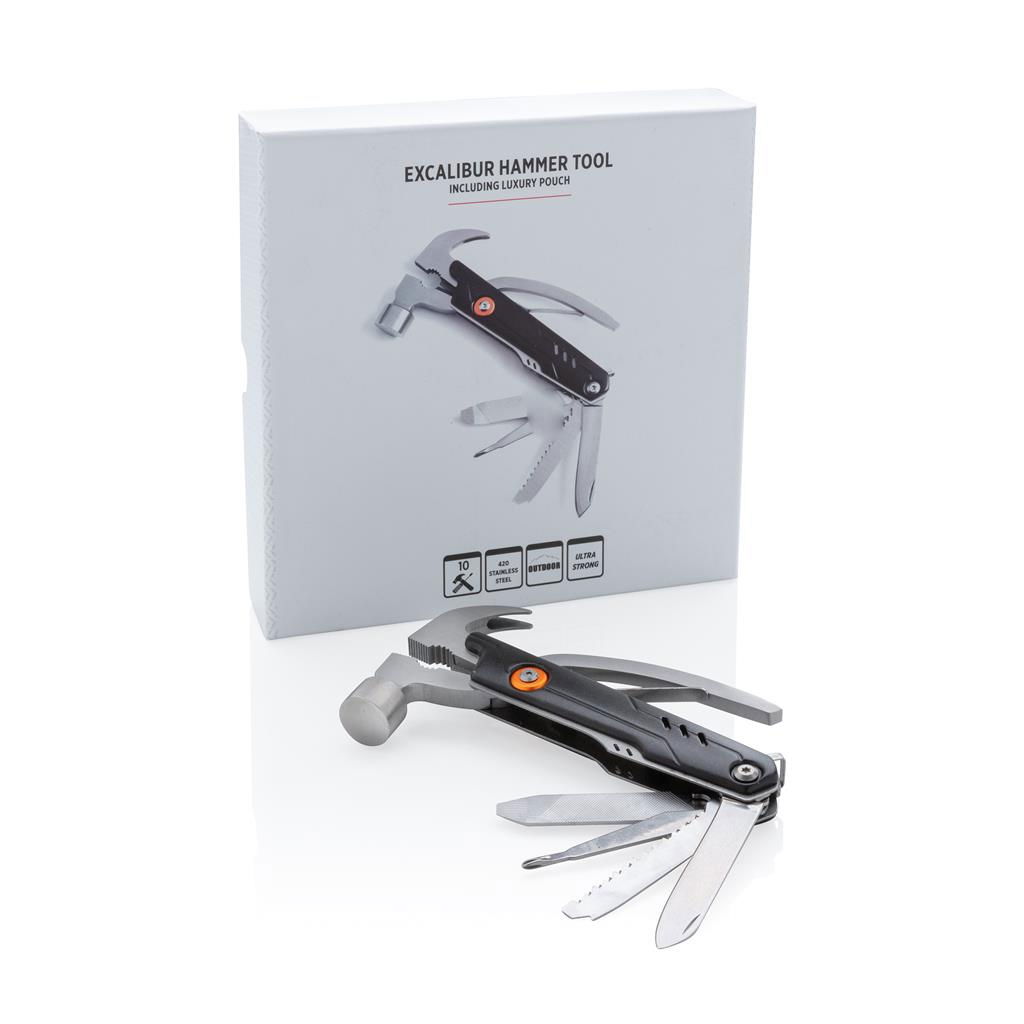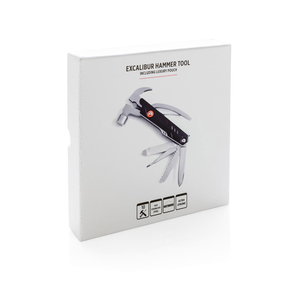 Zece unelte si-au adunat super puterile intr-una singura pentru a nu lasa loc de compromisuri data viitoare. Unealta multifunctionala de buzunar 10 in 1, Excalibur Hammer contine un ciocan, un set de capuri de surubelnita si scula principala, pila, deschizator de sticle, instrument de taiat fire si nu numai. Tot ce ai putea cere de la o lucrare si de la un meserias profesionist, poate fi acum in mana sau in buzunarul tau.